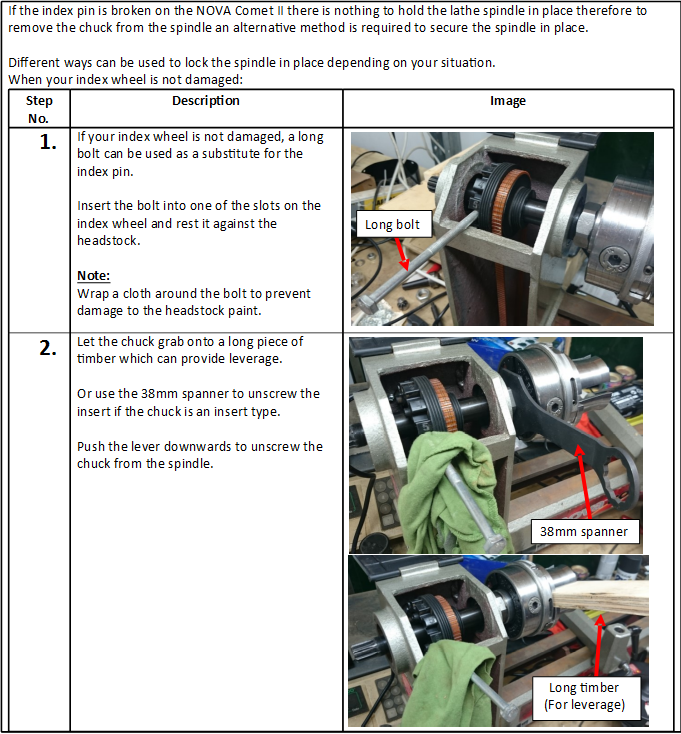 The index wheel or pin may get damaged unintentionally during the use of the lathe which may make the removal of the chuck very difficult.